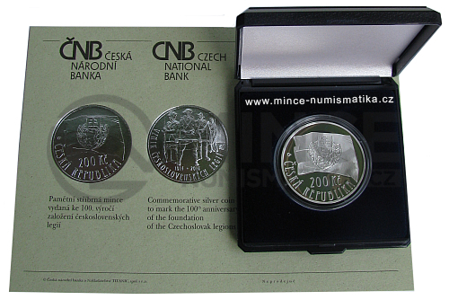 Na lícní straně mince se nachází prapor se znakem československých legií používaným v jejich náborových střediscích. Pod vyobrazením praporu je označení nominální hodnoty mince se zkratkou peněžní jednotky „200 Kč“. Při levém a spodním okraji mince je název státu „ČESKÁ REPUBLIKA“. Minci razila Česká mincovna, její značka tvořená kompozicí písmen „Č“ a „M“ je nalevo od vyobrazení praporu.