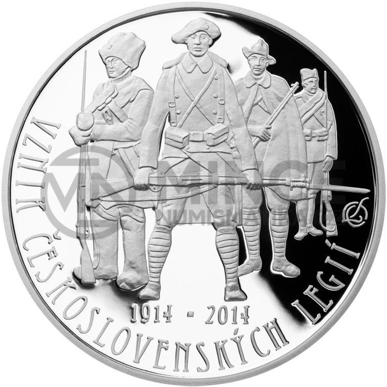 Na rubu mince jsou vyobrazeny postavy čtyř legionářů – vlevo je ruský legionář, vpředu francouzský, za ním italský a vzadu srbský legionář. Při levém, spodním a pravém okraji mince je text „VZNIK ČESKOSLOVENSKÝCH LEGIÍ“. Pod vyobrazením francouzského legionáře jsou letopočty „1914 ▫ 2014“. Autorem mince je Luboš Charvát. Jeho iniciály, které jsou tvořené propojenými písmeny „LCH“, jsou při pravém okraji mince pod vyobrazením bodáku pušky.