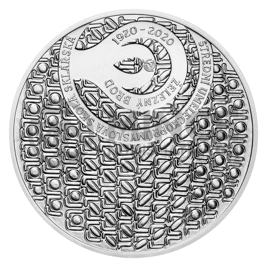 Na rubové straně dvousetkoruny je vyobrazen opět broušený talíř z olovnatého křišťálu, ve kterém je zakomponován školní emblém s texty "STŘEDNÍ UMĚLECKOPRŮMYSLOVÁ ŠKOLA SKLÁŘSKÁ", "ŽELEZNÝ BROD" a "1920-2020". Iniciály autora mince Luboše Charváta, které jsou tvořeny propojenými písmeny "L" a "Ch", jsou umístěny uprostřed emblému.