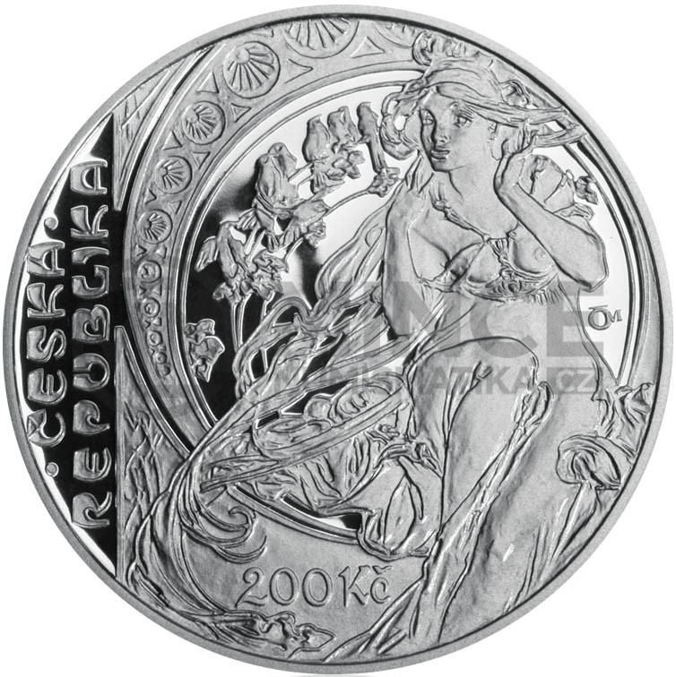 Na lícní straně mince je ztvárněn přepis dekorativního panó Alfonse Muchy „Hudba“ z cyklu „Umění“. Při levém okraji dvousetkoruny je název státu „ČESKÁ REPUBLIKA“. Označení nominální hodnoty mince se zkratkou peněžní jednotky „200 Kč“ se nachází při spodním okraji dvousetkoruny. Značka České mincovny je při pravém okraji dvousetkoruny.