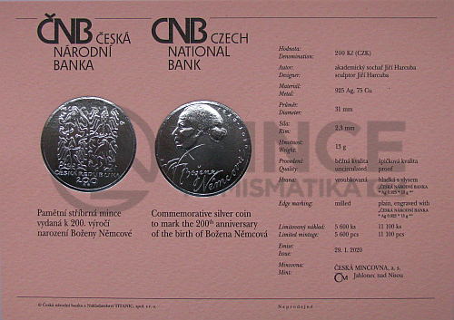 Mince uložena v kapsli a etuji (proof kvalita), ke každé minci se dodává katalogová karta růžové barvy, na níž je popis mince a její plastické vyobrazení. Text je dvojjazyčný v češtině a angličtině. Karta je společná oběma provedením mince.