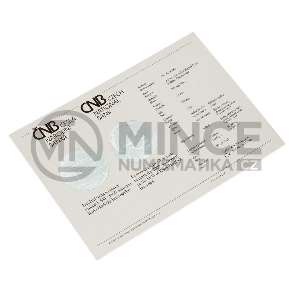 Na rubové straně dvousetkoruny je portrét Karla Havlíčka Borovského. Po obvodu mince je při pravém okraji v opisu text "KAREL HAVLÍČEK BOROVSKÝ" a při levém okraji text "1821 - 2021". Iniciály autora mince, akademického sochaře Zbyňka Fojtů, které jsou tvořeny kompozicí písmen "F" a "Z", se nacházejí vpravo od textu "1821".