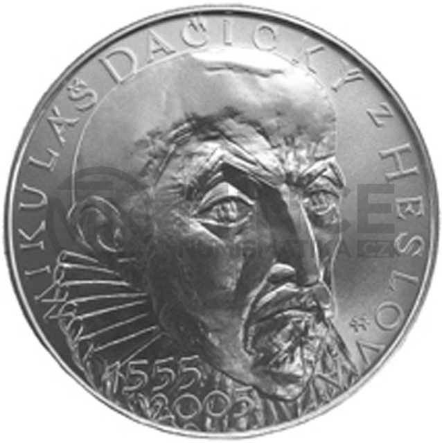 Hlavním motivem rubové strany mince je portrét Mikuláše Dačického z Heslova. Kolem portrétu je při levém, horním a pravém okraji v neuzavřeném opisu text "MIKULÁŠ DAČICKÝ Z HESLOVA" a při levém spodním okraji jsou přes okruží portrétu položeny letopočty "1555-2005".