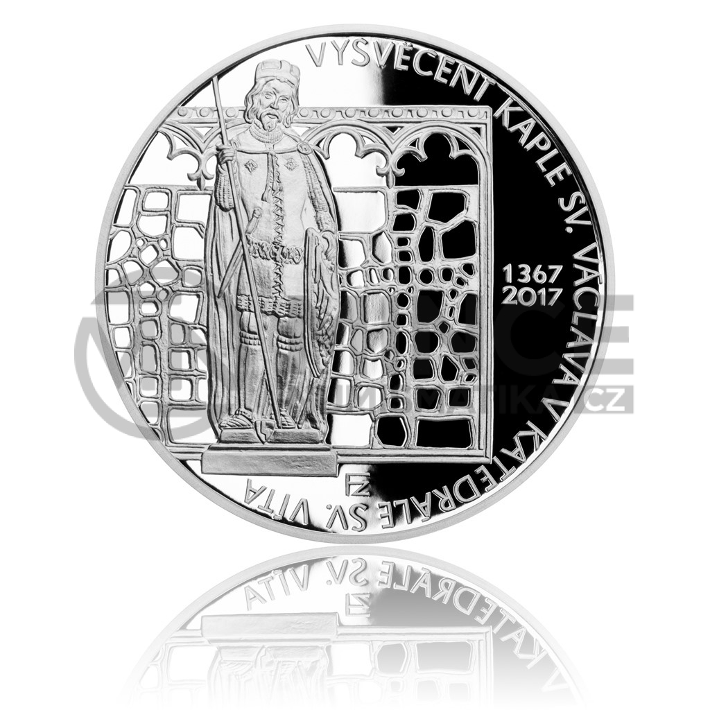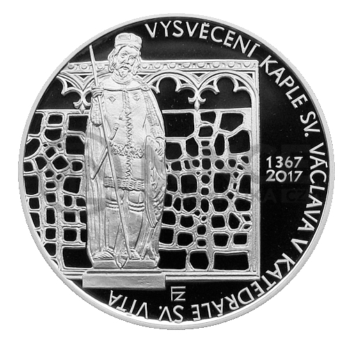 Na rubové straně dvousetkoruny je v popředí ztvárněna socha sv. Václava a v pozadí stěna kaple sv. Václava osázená polodrahokamy. Po obvodu mince je v neuzavřeném opisu text „VYSVĚCENÍ KAPLE SV. VÁCLAVA V KATEDRÁLE SV. VÍTA“. Při pravém okraji dvousetkoruny jsou ve dvou řádcích letopočty „1367“ a „2017“. Iniciály autora mince, akademického sochaře Zbyňka Fojtů, které jsou tvořeny kompozicí písmen „F“ a „Z“, jsou umístěny v dolní části mincovního pole.