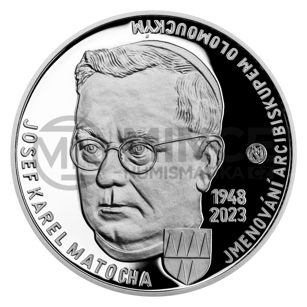 Na rubové straně dvousetkoruny je ztvárněn portrét Josefa Karla Matochy. Při pravém spodním okraji mince je umístěna zjednodušená varianta znaku Arcibiskupství olomouckého a vpravo nad ní texty „1948“ a „2023“. Texty „JOSEF KAREL MATOCHA“ a „JMENOVÁNÍ ARCIBISKUPEM OLOMOUCKÝM“ se nachází v neúplném opisu po obvodu mince. Iniciály autorky mince Mgr. Marie Šeborové, které jsou tvořeny kompozicí písmen „M“ a „Š“, jsou umístěny nad textem „1948“.