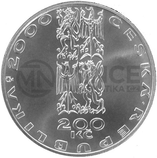 Na lícní straně je umístěna stylizace velkého státního znaku České republiky, připomínající svým tvarem stélu, posunuta k hornímu okraji mince. Název státu " ČESKÁ REPUBLIKA " a ročník ražby "2000" je v neuzavřeném opisu. Označení nominální hodnoty "200 Kč" je umístěno ve dvou řádcích pod státním znakem.