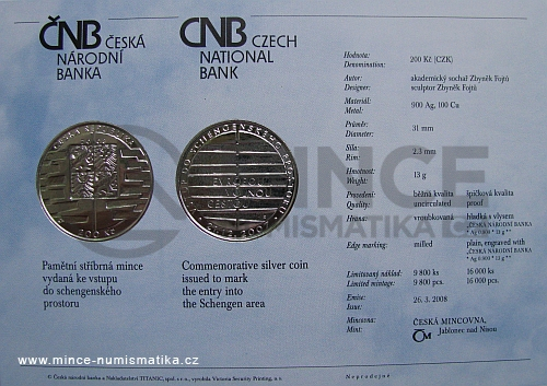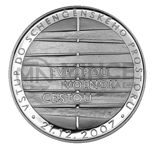 Na rubové straně dvousetkoruny jsou stylizované propojené cesty znázorňující volný pohyb osob v rámci schengenského prostoru a uprostřed nich logo „EVROPOU VOLNOU CESTOU“. Při levém, horním a pravém okraji dvousetkoruny je neuzavřený opis „VSTUP DO SCHENGENSKÉHO PROSTORU“ a při spodním okraji dvousetkoruny je datum „21.12.2007“. Autorem návrhu dvousetkoruny je akademický sochař Zbyněk Fojtů. Jeho iniciály tvořené spojenými písmeny „FZ“ jsou umístěny při pravém okraji dvousetkoruny.