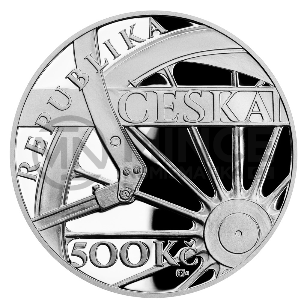 Na lícní straně pětisetkoruny je zobrazena část kola lokomotivy. V pravé horní části mince je umístěn text „ČESKÁ“. V levé horní části mince je po obvodu kola text „REPUBLIKA“. Označení nominální hodnoty mince se zkratkou peněžní jednotky „500 Kč“ se nachází ve spodní části mince. Značka České mincovny, která je tvořena kompozicí písmen „Č“ a „M“, je umístěna pod zkratkou peněžní jednotky.