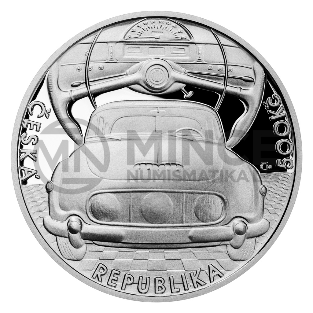 Na lícní straně pětisetkoruny je ztvárněn osobní automobil Tatra 603 z čelního pohledu. V horní části mince je zobrazena část palubní desky automobilu včetně části volantu. Při levém okraji mince je umístěn text „ČESKÁ“ a při spodním okraji mince text „REPUBLIKA“. Dolní polovina mince je ztvárněna jako podlaha tvořená dlaždicemi. Označení nominální hodnoty mince se zkratkou peněžní jednotky „500 Kč“ se nachází při pravém okraji mince. Značka České mincovny, která je tvořena kompozicí písmen „Č“ a „M“, je umístěna vlevo od nominální hodnoty.