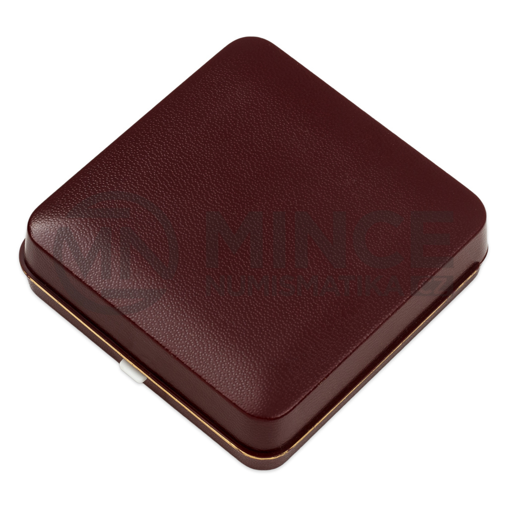 Mince uložena v kapsli a etue, přiložena katalogová karta ČNB červené barvy potvrzující její parametry.