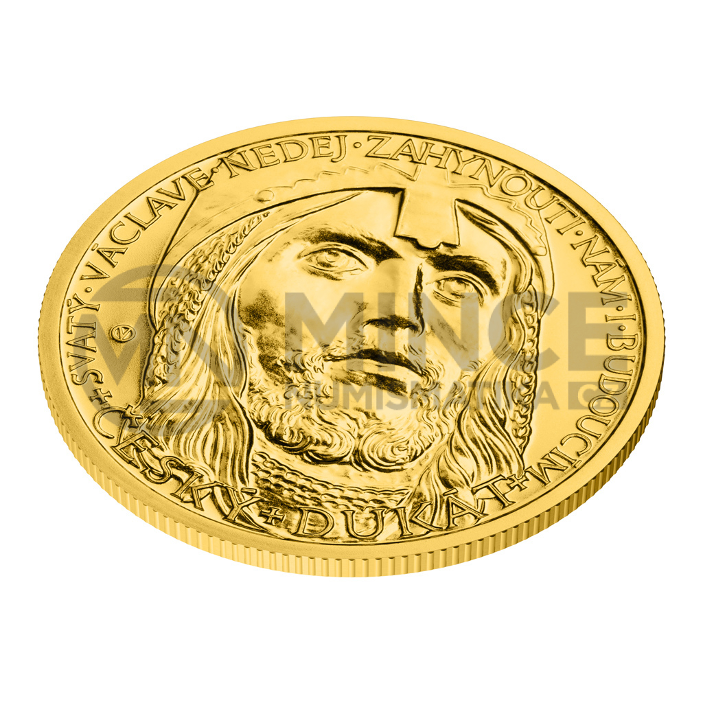 Na rubové straně mince je portrét svatého Václava s přilbou. V opisu po obvodu mince je text „SVATÝ VÁCLAVE NEDEJ ZAHYNOUTI NÁM I BUDOUCÍM“ a „ČESKÝ DUKÁT“. Jednotlivá slova textu „SVATÝ VÁCLAVE NEDEJ ZAHYNOUTI NÁM I BUDOUCÍM“ jsou od sebe oddělena značkou ve tvaru tečky. Jednotlivá slova textu „ČESKÝ DUKÁT“ jsou ohraničena značkou ve tvaru křížku. Iniciály autora mince, akademického sochaře Vladimíra Oppla, které jsou tvořeny kompozicí písmen „V“ a „O“, jsou vpravo od textu „SVATÝ“.