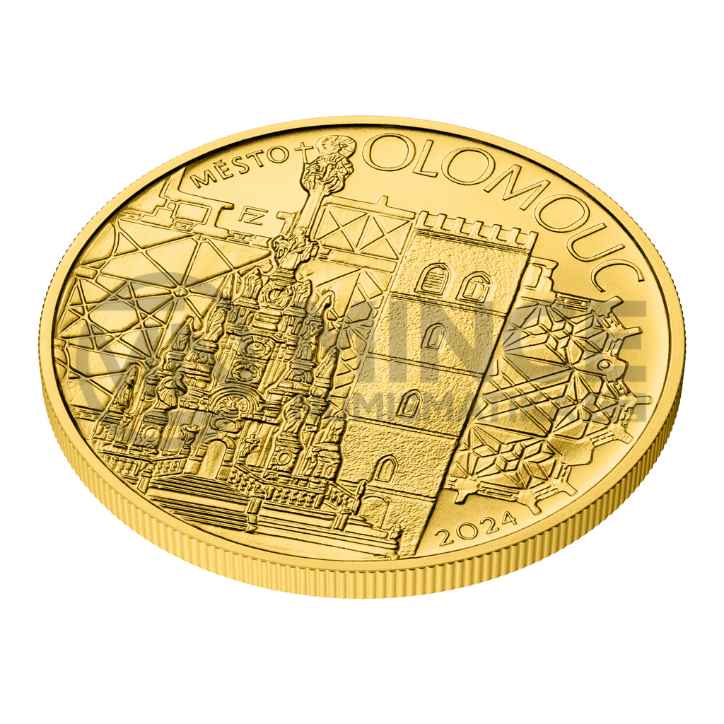Na rubové straně mince je koláž významných architektonických památek Městské památkové rezervace Olomouc. V popředí je Sloup Nejsvětější Trojice a zvonicová věž kostela sv. Mořice. V pozadí je půdorys kostela sv. Mořice včetně znázornění klenebního žebroví. Při horním okraji mince je text „MĚSTO OLOMOUC“. Ročník ražby „2024“ je při pravém spodním okraji mince. Iniciály autora mince, akademického sochaře Zbyňka Fojtů, které jsou tvořeny kompozicí písmen „F“ a „Z“, jsou vlevo od horní části Sloupu Nejsvětější Trojice.