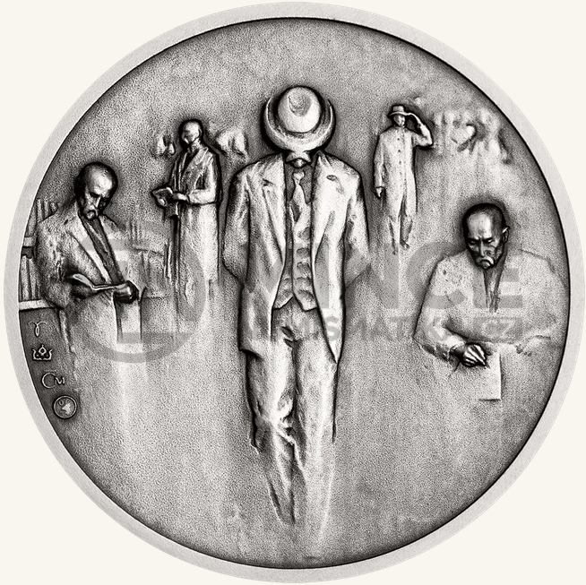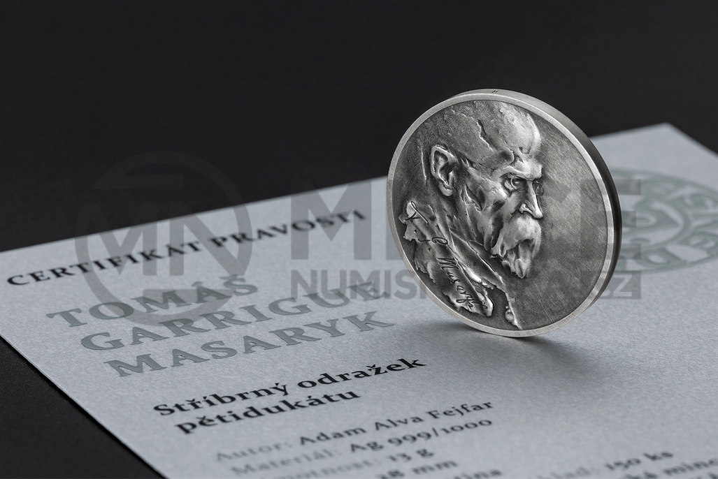 Na Masaryka jsem při této práci nenahlížel jen jako na prezidenta, ale hlavně jako na světovou osobnost. Přední straně dominuje portrét odhodlaného a silného politika exilu, který nejenže neustoupil ze svých nejtěžších cílů ale ani při zdolávání nešel proti svému svědomí. Na druhé straně je cesta Masaryka, humanisty, filosofa, pedagoga. Cesta vzdělání, práce, světaznalosti, obrovské literární a politické aktivity a samoty exilu člověka, který věřil.