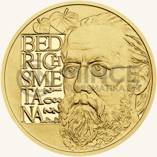 Averzu dominuje tvář Smetany, jejíž podoba je syntézou několika dobových zobrazení. Portrét je pojat realisticky, avšak s vybalancovanou mírou výtvarné stylizace zachovávající stopy medailérova „rukopisu“, zpracování materiálu. Efektním kontrapunktem k textuře portrétu a podkladu je proofová (vysoce lesklá) plocha s typograficky vynalézavě pojatým nápisem BEDŘICH SMETANA 1824 2024. Tvar
