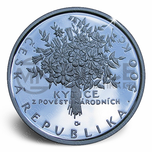 Na lícní straně mince je zobrazena kytice lučních květin, přes jejichž stonky je umístěn dvouřádkový nápis „KYTICE Z POVĚSTÍ NÁRODNÍCH. Při levém, spodním a pravém okraji pětisetkoruny je název státu „ČESKÁ REPUBLIKA“ a označení nominální hodnoty mince se zkratkou peněžní jednotky „500 Kč“. Oba texty jsou odděleny tečkou. Značka České mincovny je nad písmenem „B“ ze slova „REPUBLIKA“.