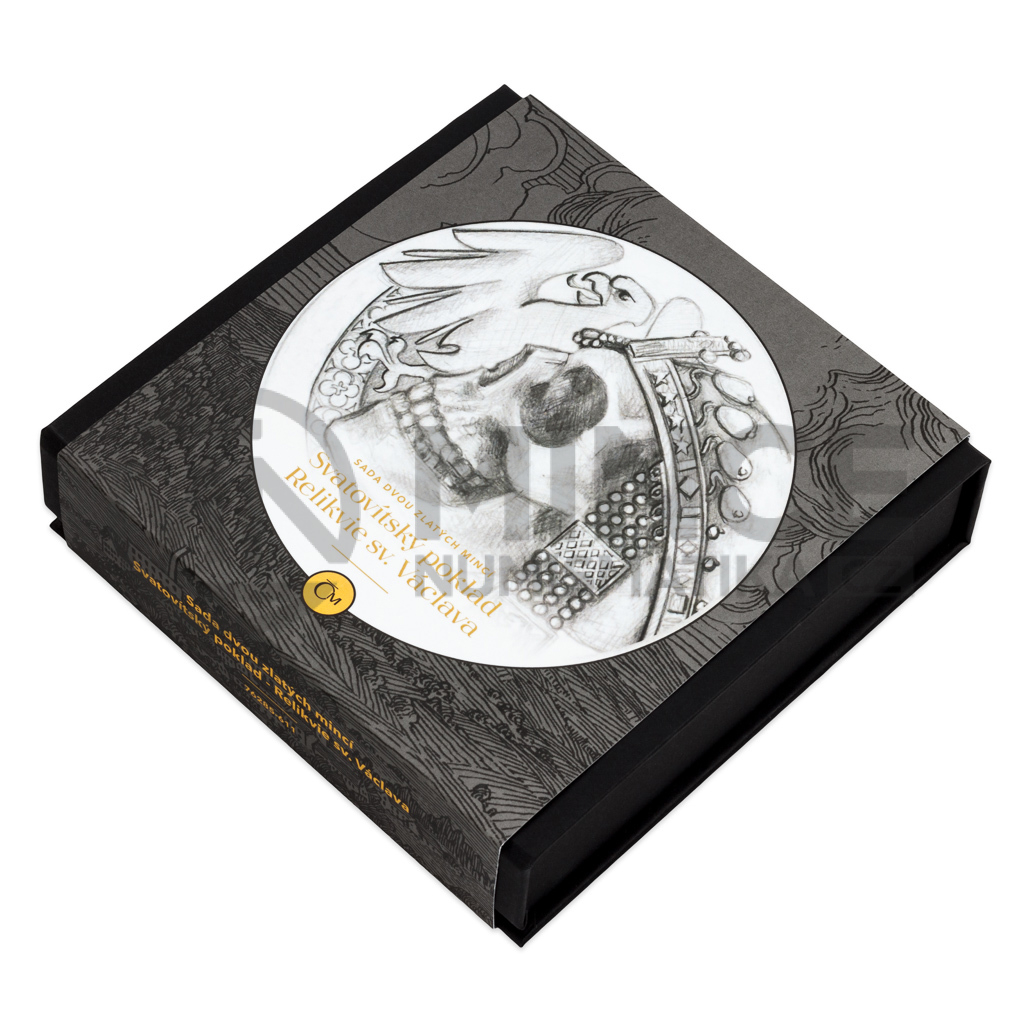Druhá sada dvou zlatých mincí České mincovny z volného cyklu, který je věnován Svatovítskému pokladu, připomíná význam relikvií svatého Václava.