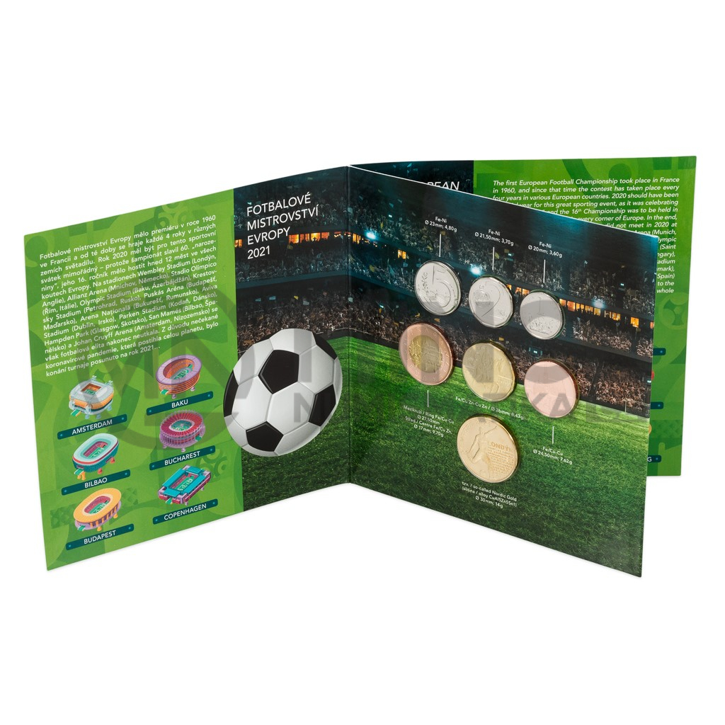 Tradiční sada oběžných mincí České mincovny a České národní banky se sportovní tematikou je v roce 2021 věnována mistrovství Evropy ve fotbale, které poznamenala koronavirová pandemie.