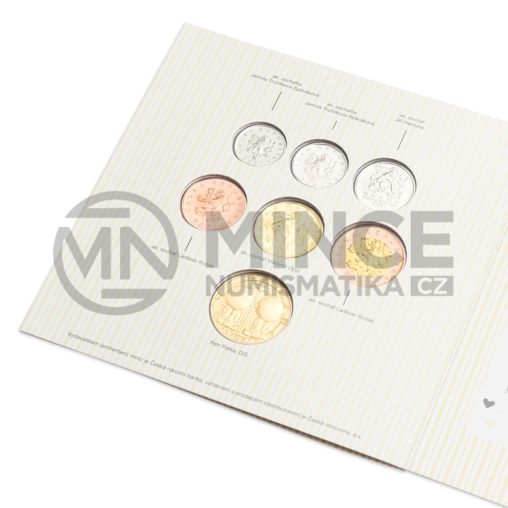 Pro tento účel vznikla výroční sada oběžných mincí – obsahuje všechny platné kovové mince s nominálními hodnotami 1, 2, 5, 10, 20 a 50 Kč a s vyraženým letopočtem 2021, které vydala Česká národní banka a vyrobila Česká mincovna z Jablonce nad Nisou. Šestici mincí, které neprošly oběhem, doplňuje ještě pamětní žeton, jehož autorkou je medailérka Lenka Nebeská, DiS. – vyobrazuje spící miminko, které drží v dlaních jeho rodiče, a tradiční dětskou hračku v podobě houpacího koníka.