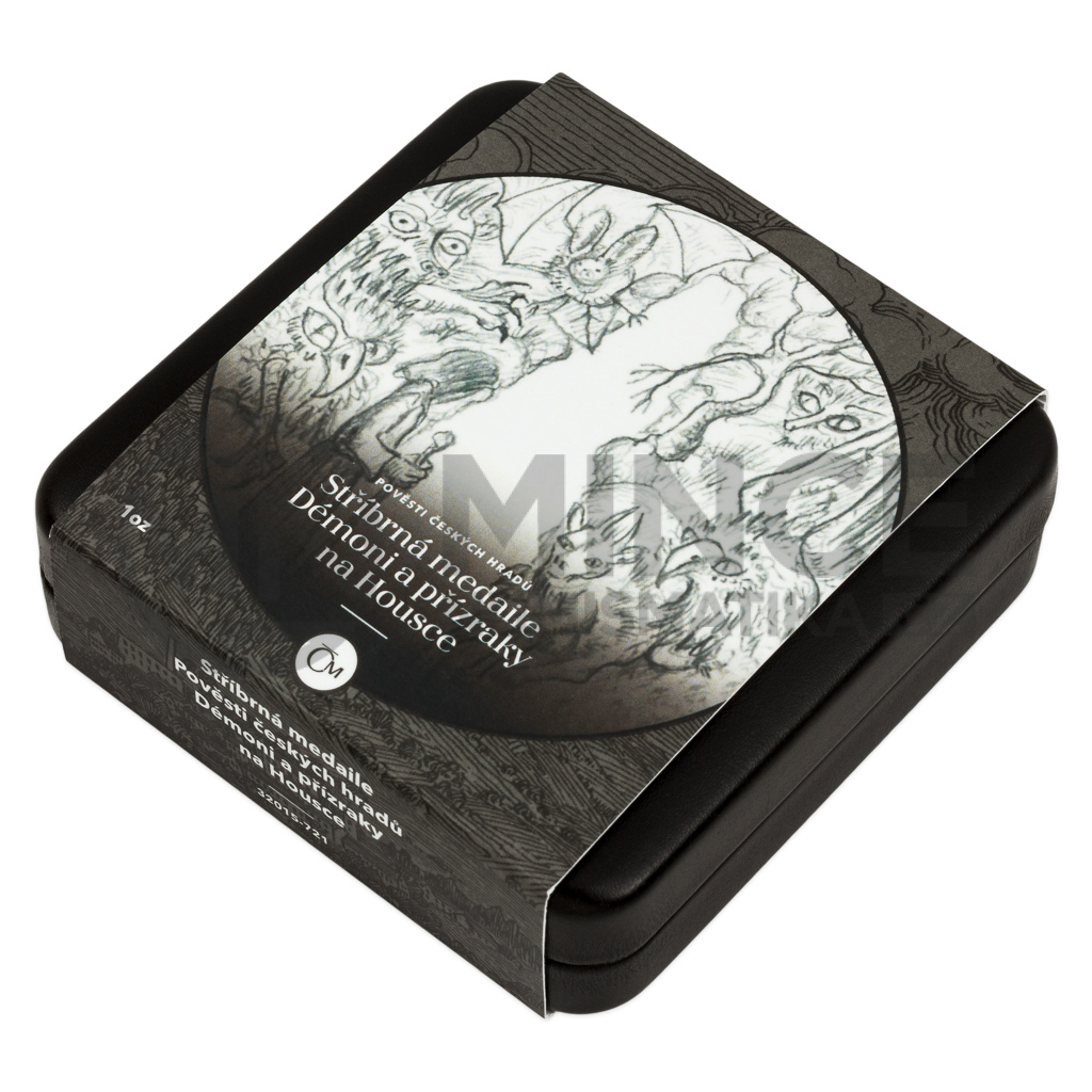 Cyklus České mincovny s názvem Pověsti českých hradů je plný mýtů, záhad a pohádek. Druhá pamětní medaile z ryzího stříbra připomíná pověst o pekelné bráně na Housce.