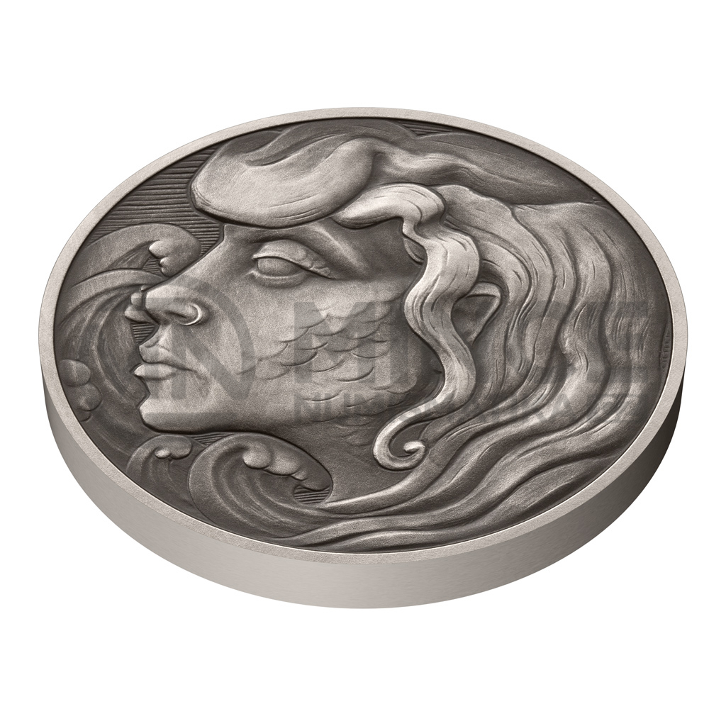 Čtvrtá stříbrná mince České mincovny z cyklu s názvem Mytologické postavy představuje půvabnou mořskou pannu.