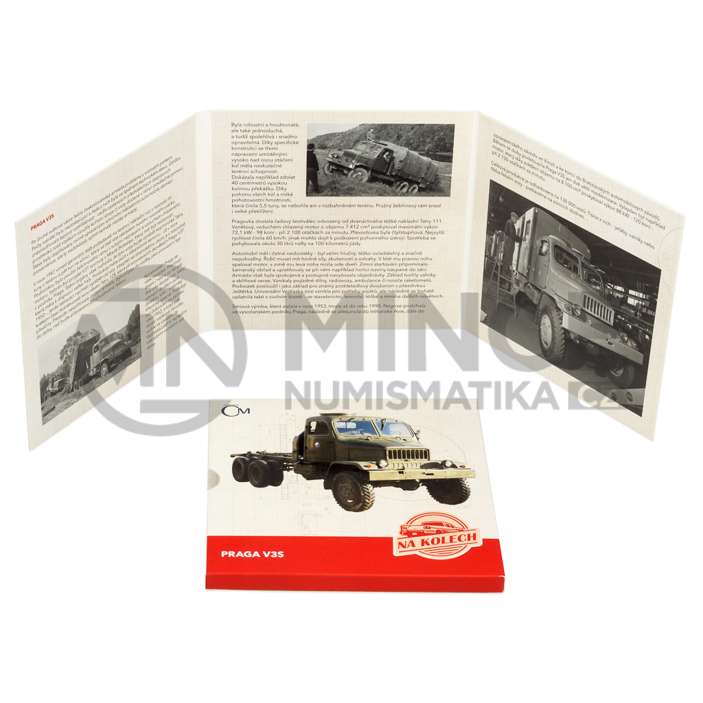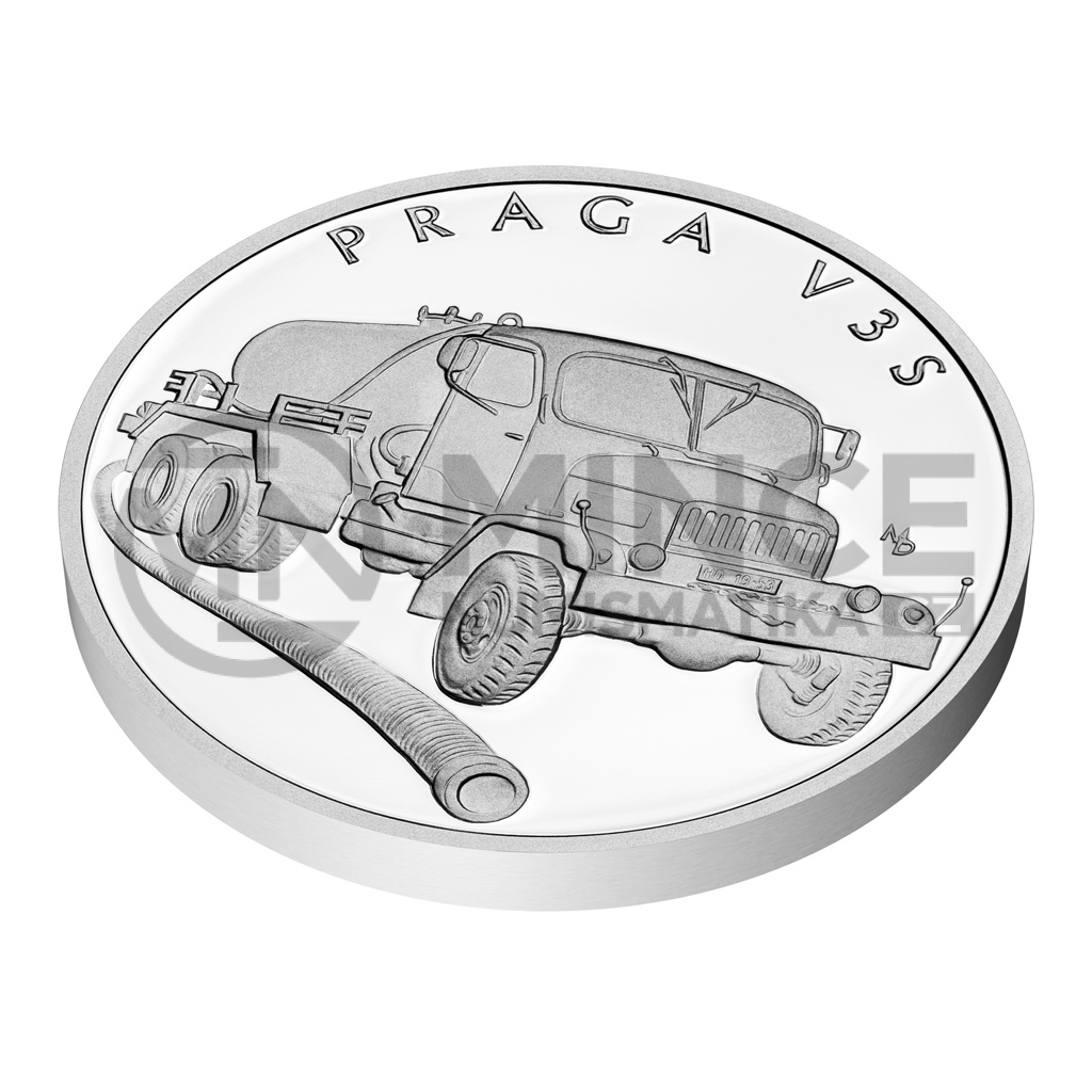 Univerzální nákladní automobil Praga V3S, jehož nejvýznamnějším rysem byla bezkonkurenční průchodnost terénem, sice vznikl pro potřeby československé armády, ale zazářily také jeho civilní varianty. Hold mu vzdává dvaadvacátá stříbrná mince České mincovny z cyklu Na kolech.