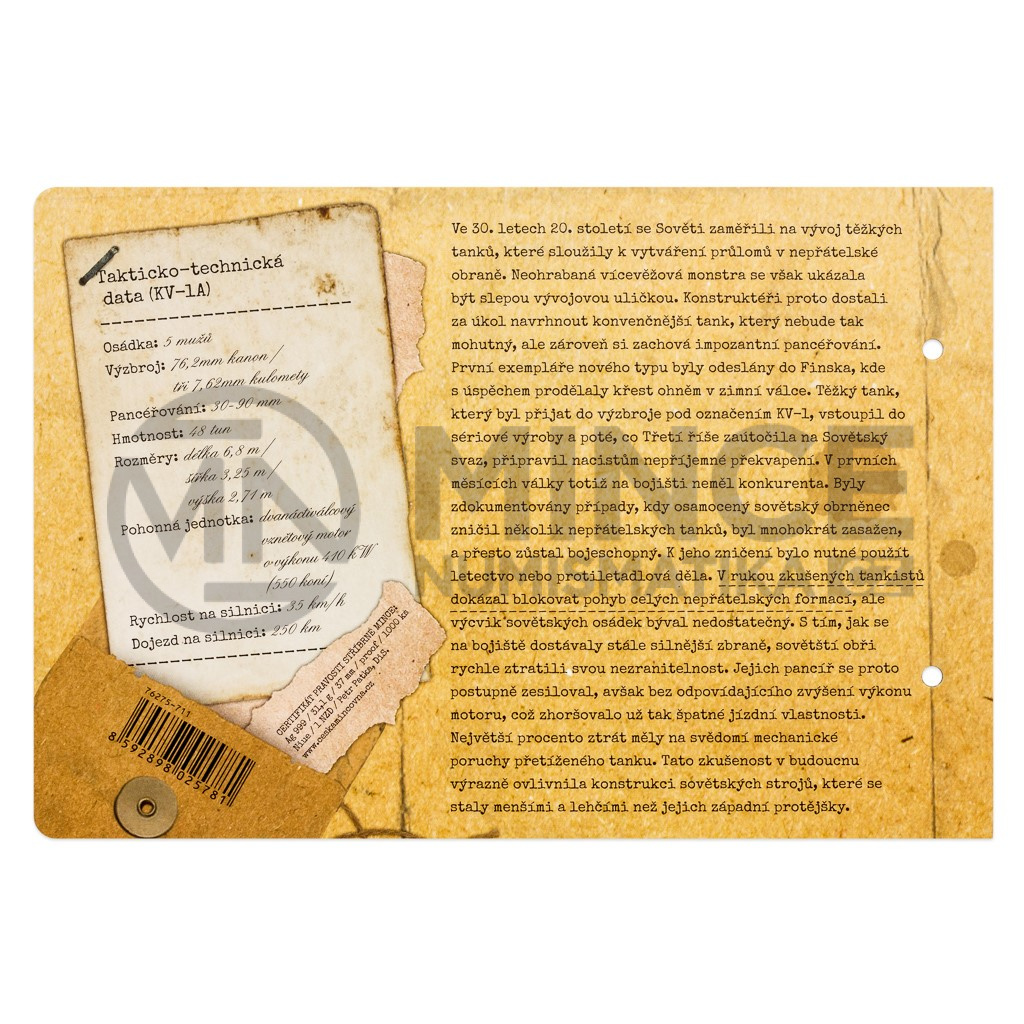 Mince je zasazena do výpravného balení v podobě katalogové karty plné dobových fotografií, zajímavostí a takticko-technických dat. Jednotlivé karty si můžete ukládat do sběratelského šanonu, který rovněž najdete v nabídce České mincovny.