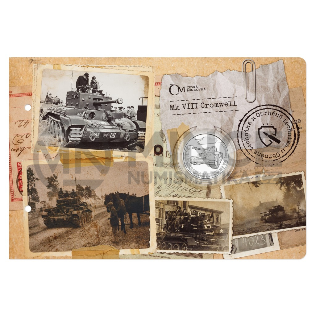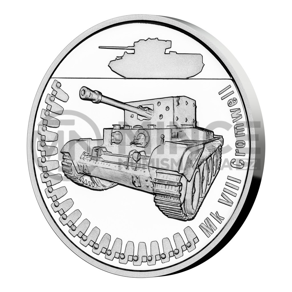 První stříbrná mince České mincovny z cyklu Obrněná technika připomíná britský tank Mk VIII Cromwell, který sloužil za druhé světové války.