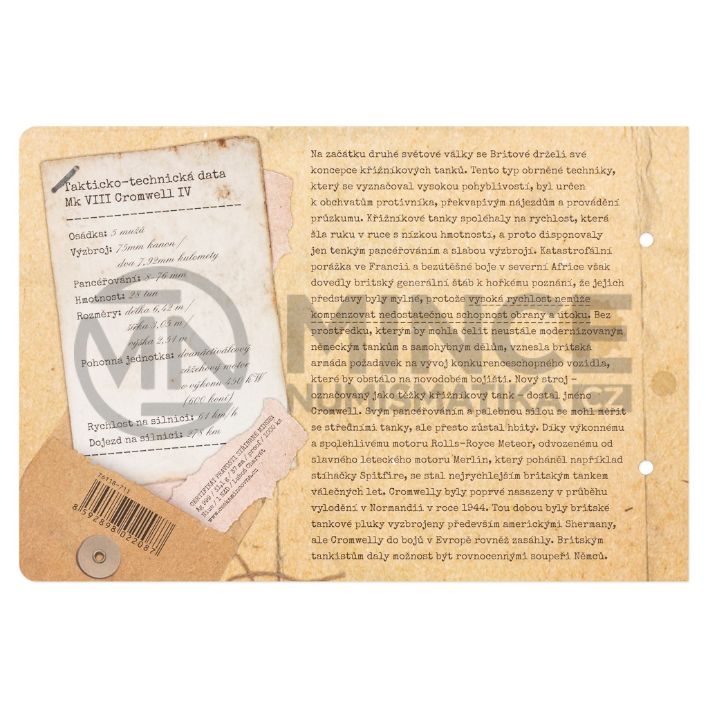 Reverzní strana pamětní mince, která je dílem medailéra Luboše Charváta, předkládá dvě vyobrazení britského tanku – tříčtvrteční pohled doprovází boční silueta. Kompozici dotváří opis Mk VIII Cromwell a detail tankového pásu. Pásy najdete také na averzní straně mince, která je společná celé tankistické sérii. Protože licenci k vydávání pamětních mincí České mincovny poskytuje tichomořský ostrov Niue, nese averz ještě jeho nezbytné atributy – jméno a portrét královny Alžběty II., nominální hodnotu 1 DOLLAR (NZD) a rok vydání 2022.