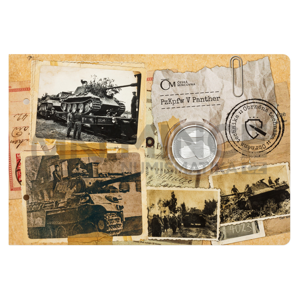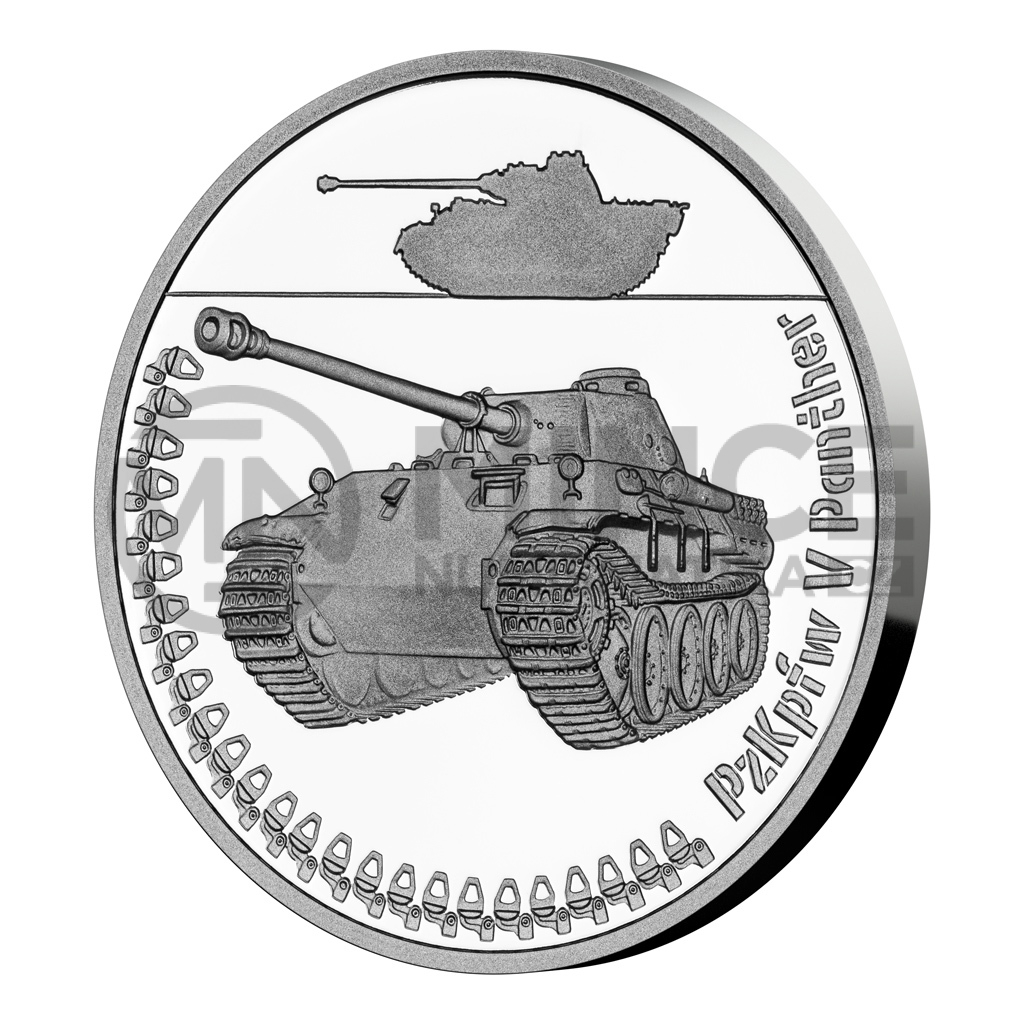 Osmá stříbrná mince České mincovny z cyklu Obrněná technika připomíná německý tank PzKpfw V Panther, který sloužil za druhé světové války.