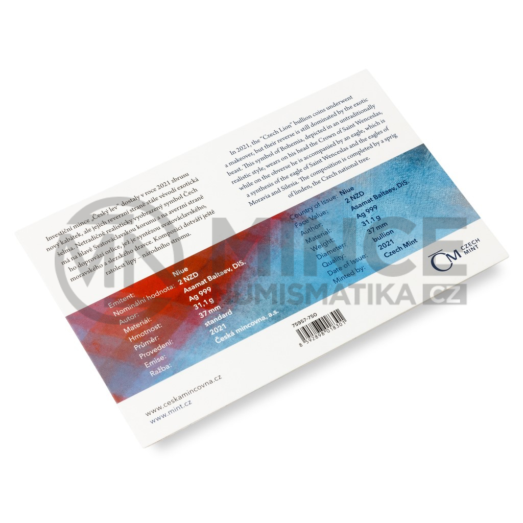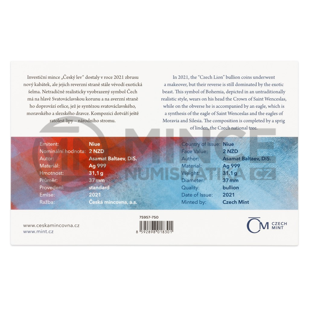 Světové investiční mince bývají věnovány silným národním symbolům a ani „Český lev“, který je první ražbou svého druhu určenou pro český trh, není výjimkou. Hmotnost stříbrné mince České mincovny činí jednu trojskou unci.