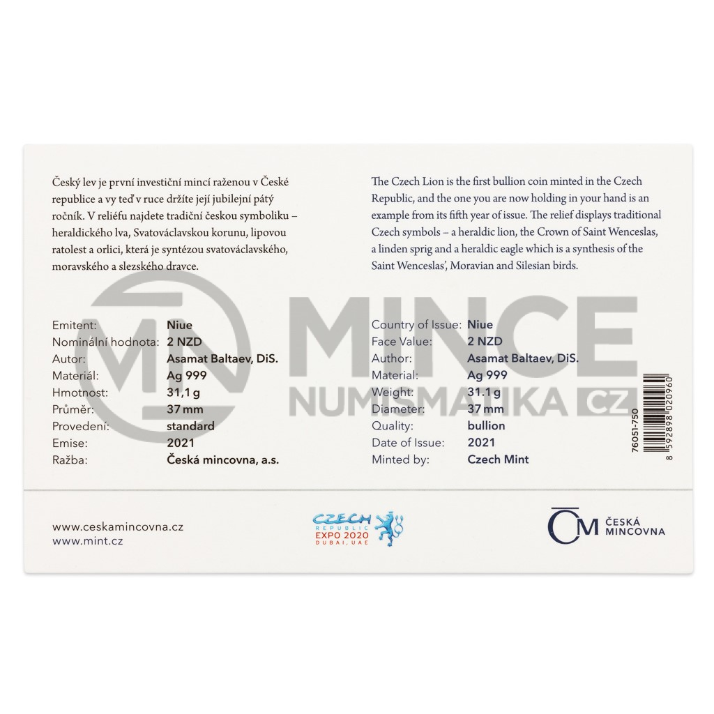 Světové investiční mince bývají věnovány silným národním symbolům a ani „Český lev“, který je první ražbou svého druhu určenou pro český trh, není výjimkou. Hmotnost stříbrné mince České mincovny činí jednu trojskou unci.