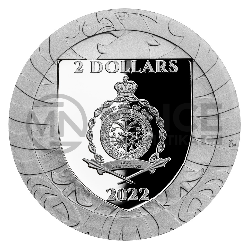 Reverzní straně mince vévodí netradičně realisticky zpracovaný český lev, který má na hlavě pozlacenou Svatováclavskou korunu. Kompozici dotvářejí lipové lístky. Averzní strana pak předkládá orlici, jež je syntézou svatováclavského, moravského a slezského dravce. Autorem reliéfu je již tradičně medailér Asamat Baltaev, DiS. Protože mince České mincovny vycházejí v licenci zahraničního emitenta, kterým je ostrov Niue, jejich averzní strana nese ještě jeho nezbytné atributy – jméno a portrét královny Alžběty II., nominální hodnotu 2 DOLLARS (NZD) a rok emise 2022.