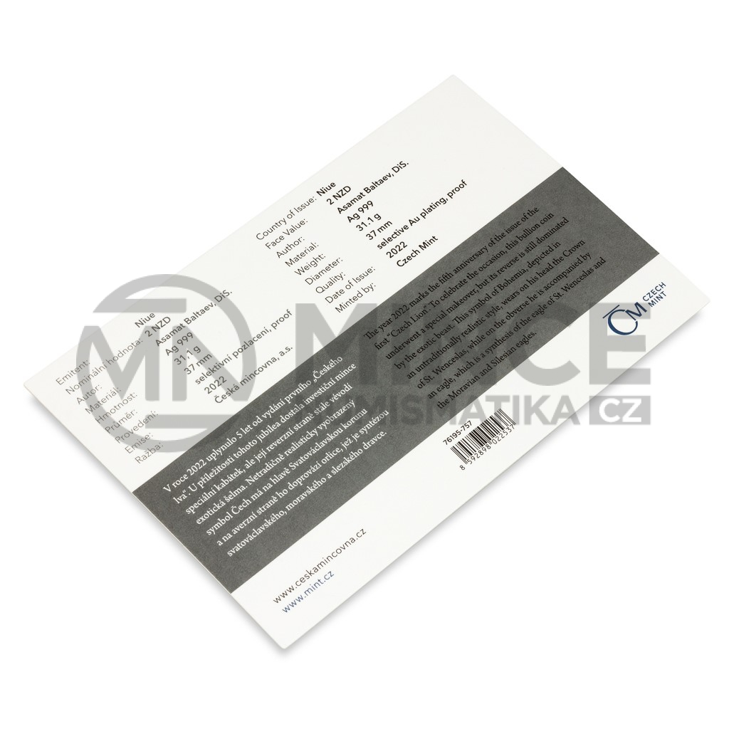 V roce 2022 uplynulo 5 let od vydání prvního „Českého lva“ a při té příležitosti se v reliéfu ražby objevuje ještě pozlacená číslice 5. Mince je uložena do speciálního číslovaného balení.