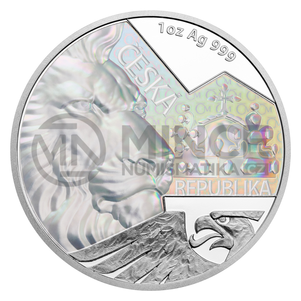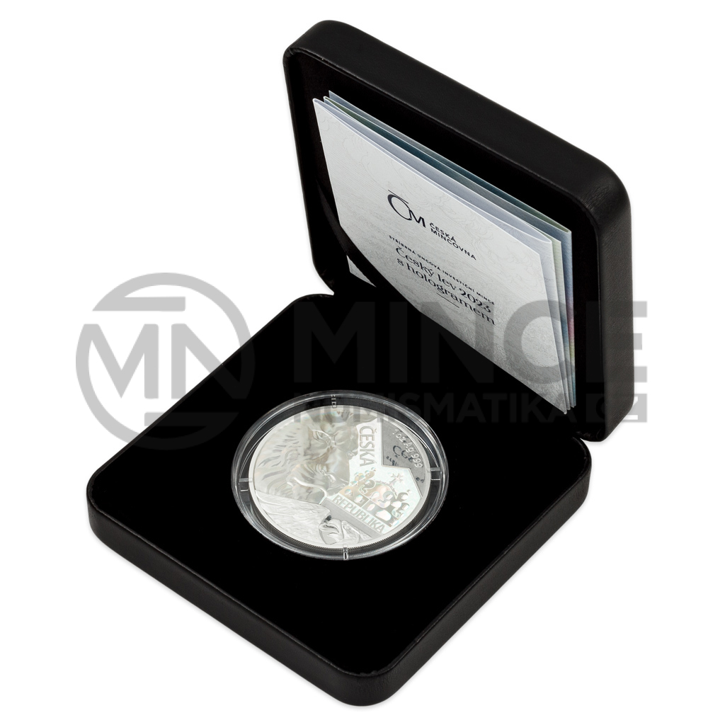 V roce 2023 představujeme unikátní variantu stříbrné investiční mince České mincovny „Český lev“ s hmotností čítající jednu trojskou unci. Ústřední motiv této mince je namísto drobné plastiky tvořen raženým hologramem!