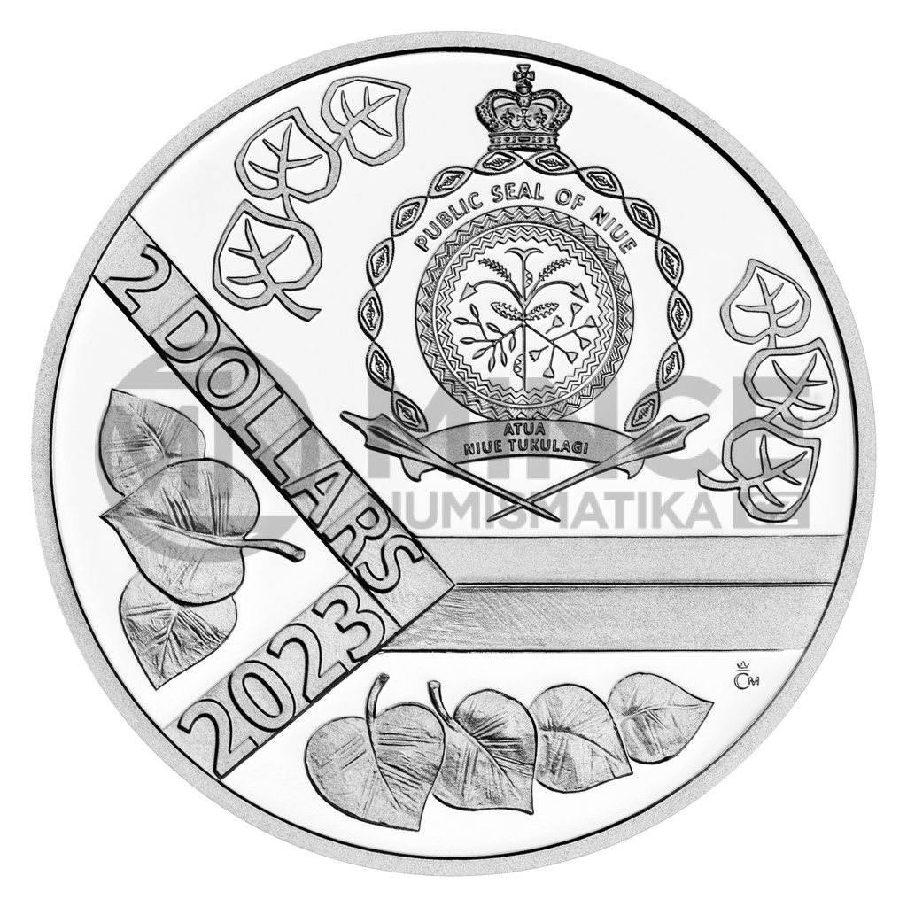Reverzní strana mince, která je dílem medailéra Asamata Baltaeva, DiS., předkládá českého lva, Svatováclavskou korunu a orlici, jež je syntézou svatováclavského, moravského a slezského dravce. Přestože reverz působí velmi plasticky, nenechte se zmást – je totiž prakticky plochý. Motiv je tvořen mikroskopickými reliéfy s detailem začínajícím v řádu nanometrů – tj. miliardtin metru. Averzní strana pak předkládá lipovou ratolest a kompozici, která evokuje českou vlajku. Protože mince České mincovny vycházejí v licenci zahraničního emitenta, kterým je ostrov Niue, jejich averz nese ještě jeho nezbytné atributy – státní znak, nominální hodnotu 2 DOLLARS (NZD) a rok emise 2023. Averz je na rozdíl od reverzu zpracován běžnou medailérskou technikou.