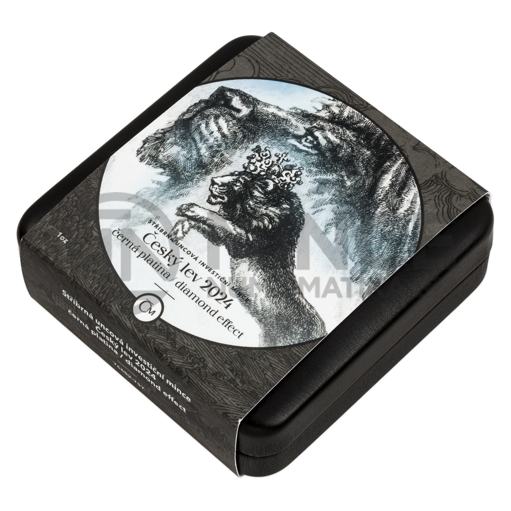 „Čeští lvi“ – investiční mince České mincovny – sice slouží k uložení peněžních prostředků do drahých kovů, ale jejich propracovaný reliéf láká také každého, kdo chce rozšířit svou numismatickou sbírku nebo věnovat výjimečný dárek. Krásu stříbrné mince s ročníkem 2024 podtrhuje hned dvojí povrchová úprava. Pokovení nevšední černou platinou doprovází třpytivý diamantový efekt.