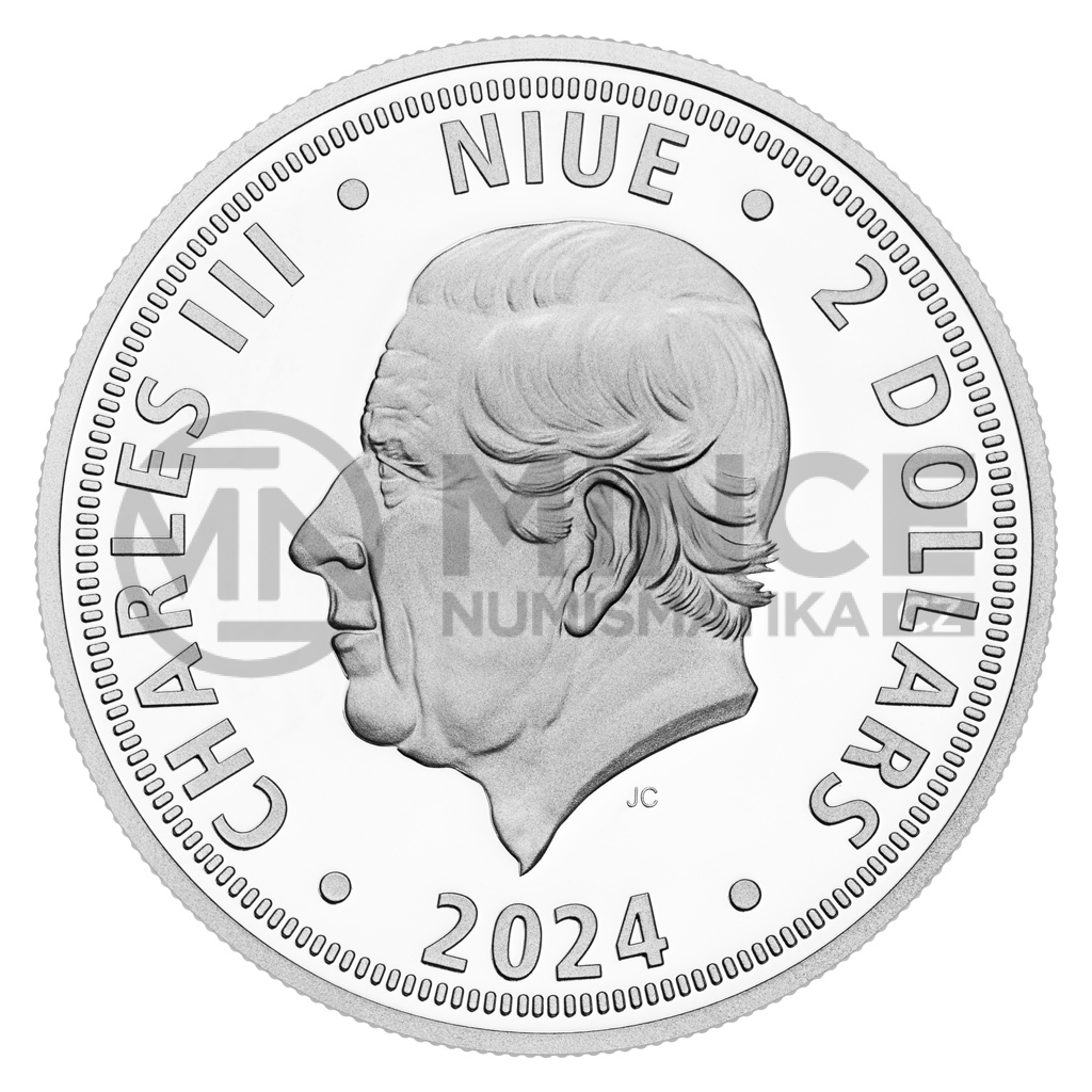 Reverzní straně mince vévodí český lev v realistickém podání a v živých barvách, který má na hlavě Svatováclavskou korunu. Doplňkovým motivem je orlice, jež je syntézou svatováclavského, moravského a slezského dravce. Nápis ČESKÁ REPUBLIKA je umístěn do klínu, který evokuje českou vlajku. Autorem reliéfu je již tradičně medailér Asamat Baltaev, DiS. Protože mince České mincovny vycházejí v licenci zahraničního emitenta, kterým je ostrov Niue, jejich averzní strana nese jeho nezbytné atributy – portrét krále Karla III., nominální hodnotu 2 DOLLARS (NZD) a rok emise 2024.