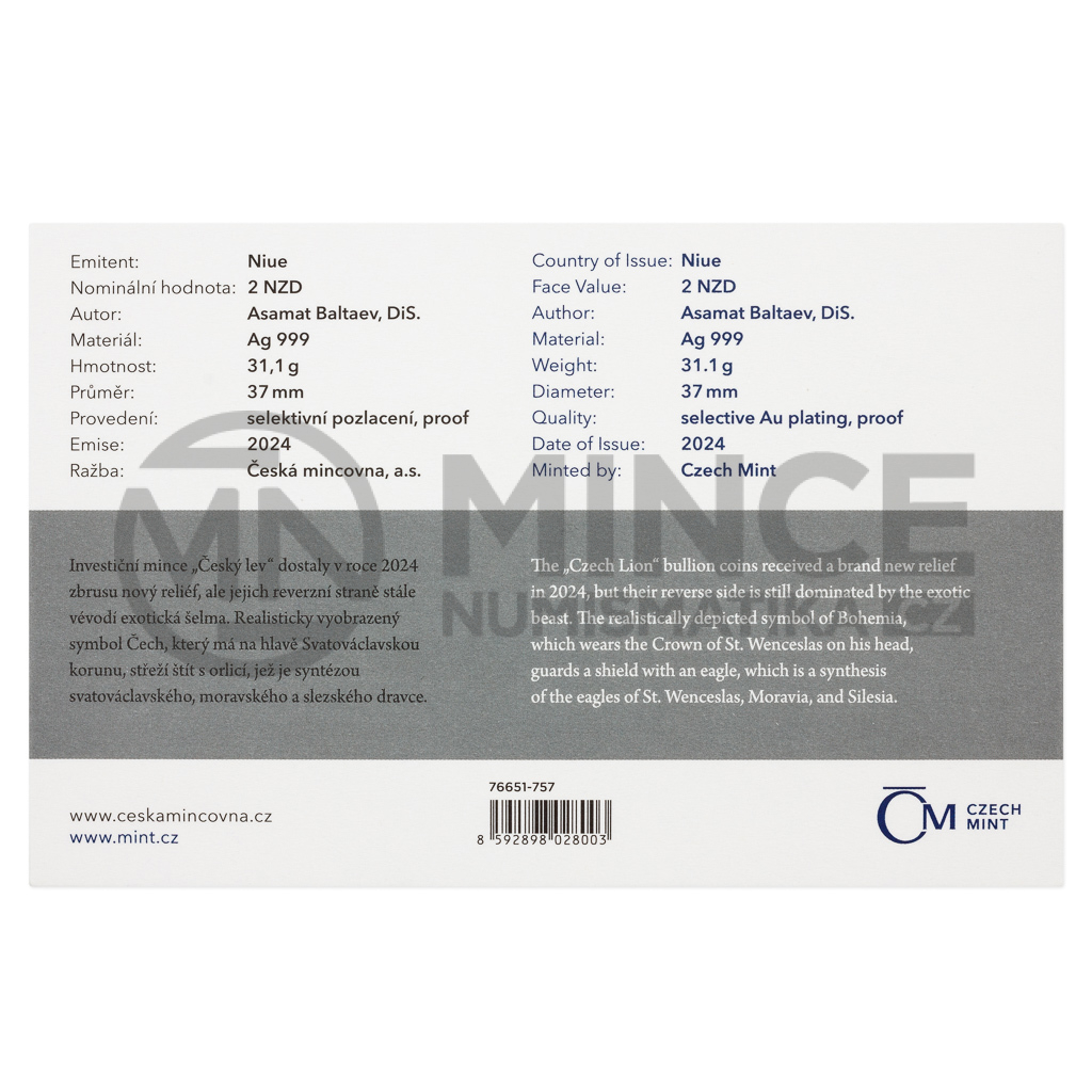 „Čeští lvi“ – investiční mince České mincovny – sice slouží k uložení peněžních prostředků do drahých kovů, ale jejich propracovaný reliéf láká také každého, kdo chce rozšířit svou numismatickou sbírku nebo věnovat výjimečný dárek. Krásu stříbrné mince s ročníkem 2024 podtrhuje selektivní pozlacení.