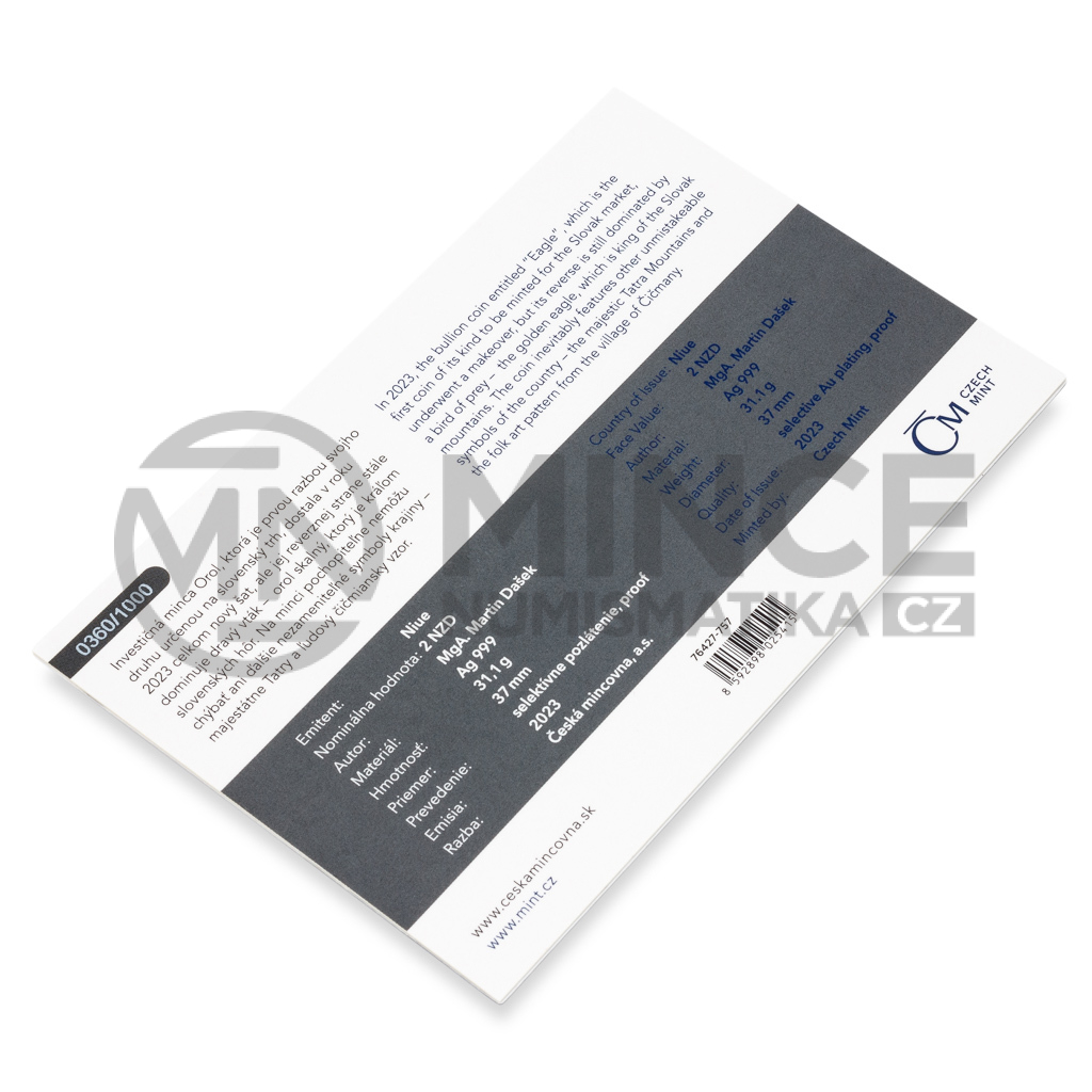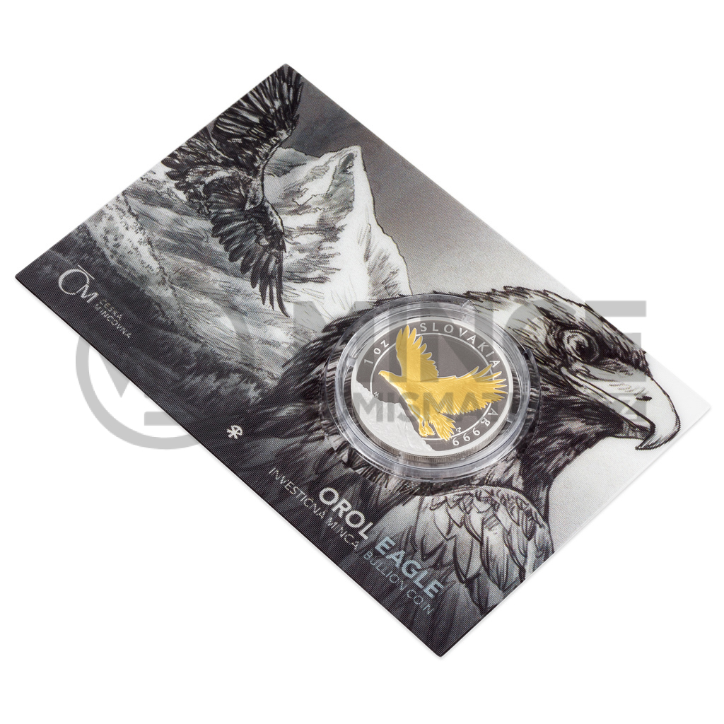 Světové investiční mince bývají věnovány silným národním symbolům a ani „Orol“, který je první ražbou svého druhu určenou pro slovenský trh, není výjimkou. Hmotnost stříbrné mince České mincovny s ročníkem 2023, která se může pochlubit špičkovou kvalitou proof a také selektivním pozlacením, činí jednu trojskou unci.