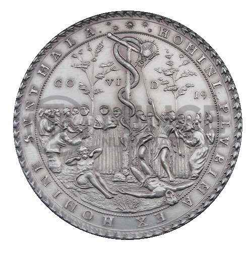 Medaile napodobuje středověký ochranný amulet, tzv. Morový tolar, který chránil své majitele proti nákaze (mor, koronavirus apod.).