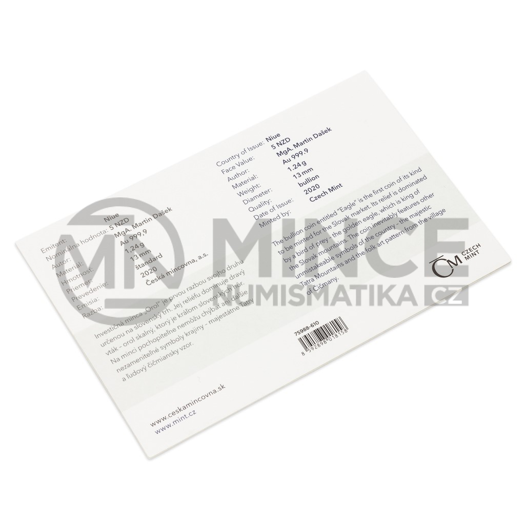 Světové investiční mince bývají věnovány silným národním symbolům a ani zlatá mince „Orol“ o hmotnosti 1/25 trojské unce, která je první ražbou svého druhu určenou pro slovenský trh, není výjimkou.