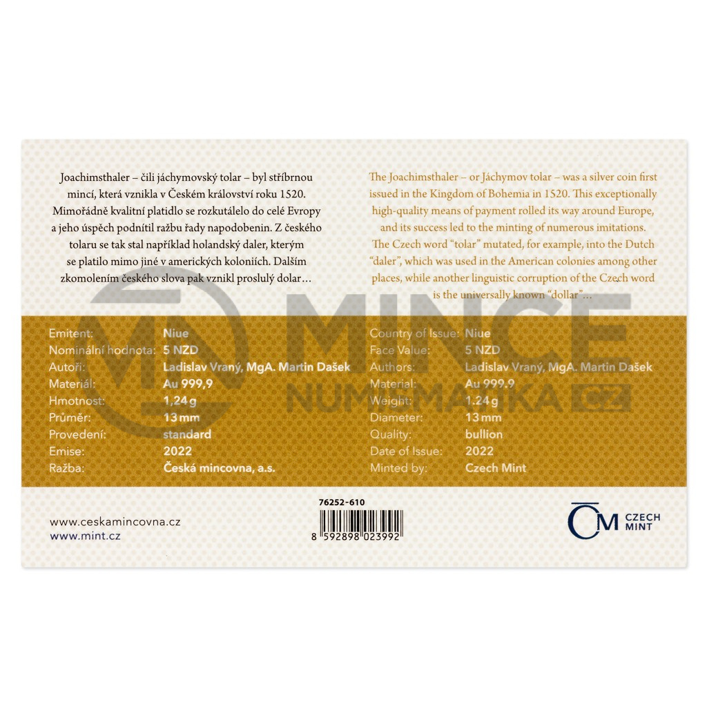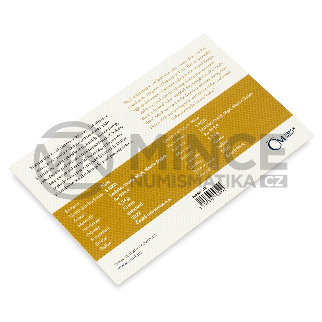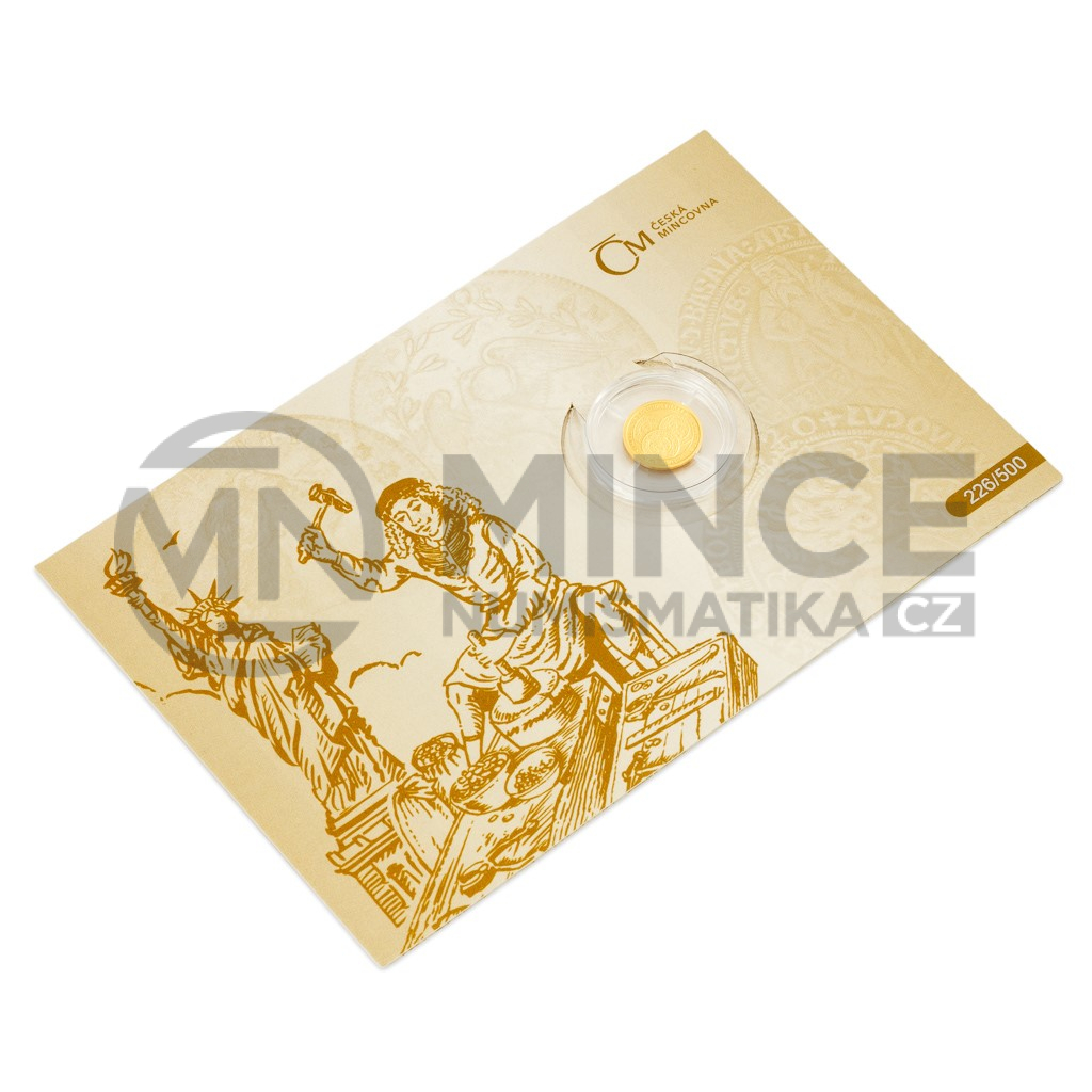 Jak se z jáchymovských tolarů staly americké dolary? Tento neuvěřitelný příběh vám připomene investiční mince České mincovny vyražená z jedné pětadvacetiny trojské unce ryzího zlata.