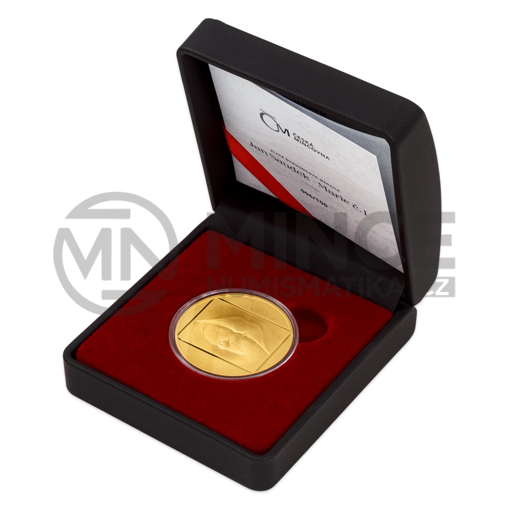 Výjimečná zlatá medaile České mincovny o hmotnosti dvou trojských uncí vzdává hold Janu Saudkovi a jeho obrazu s názvem Marie č. 1.