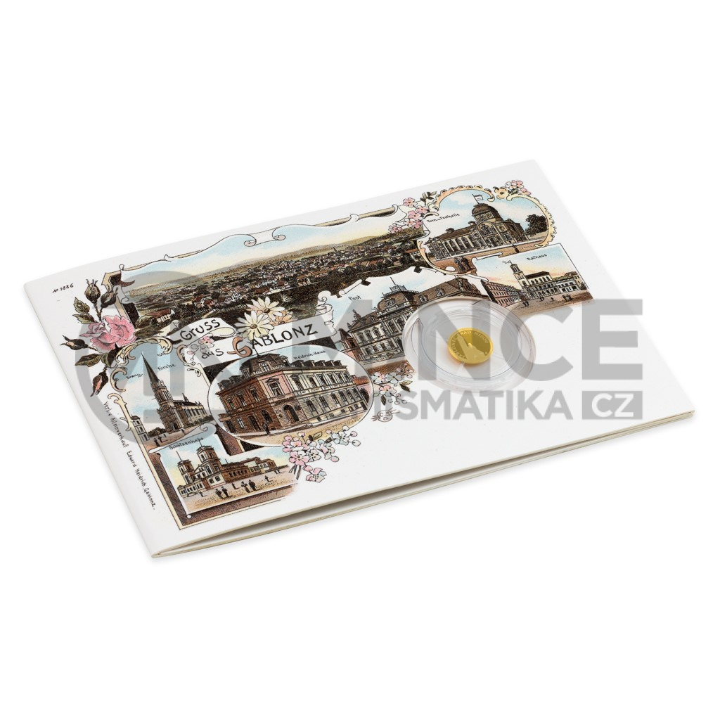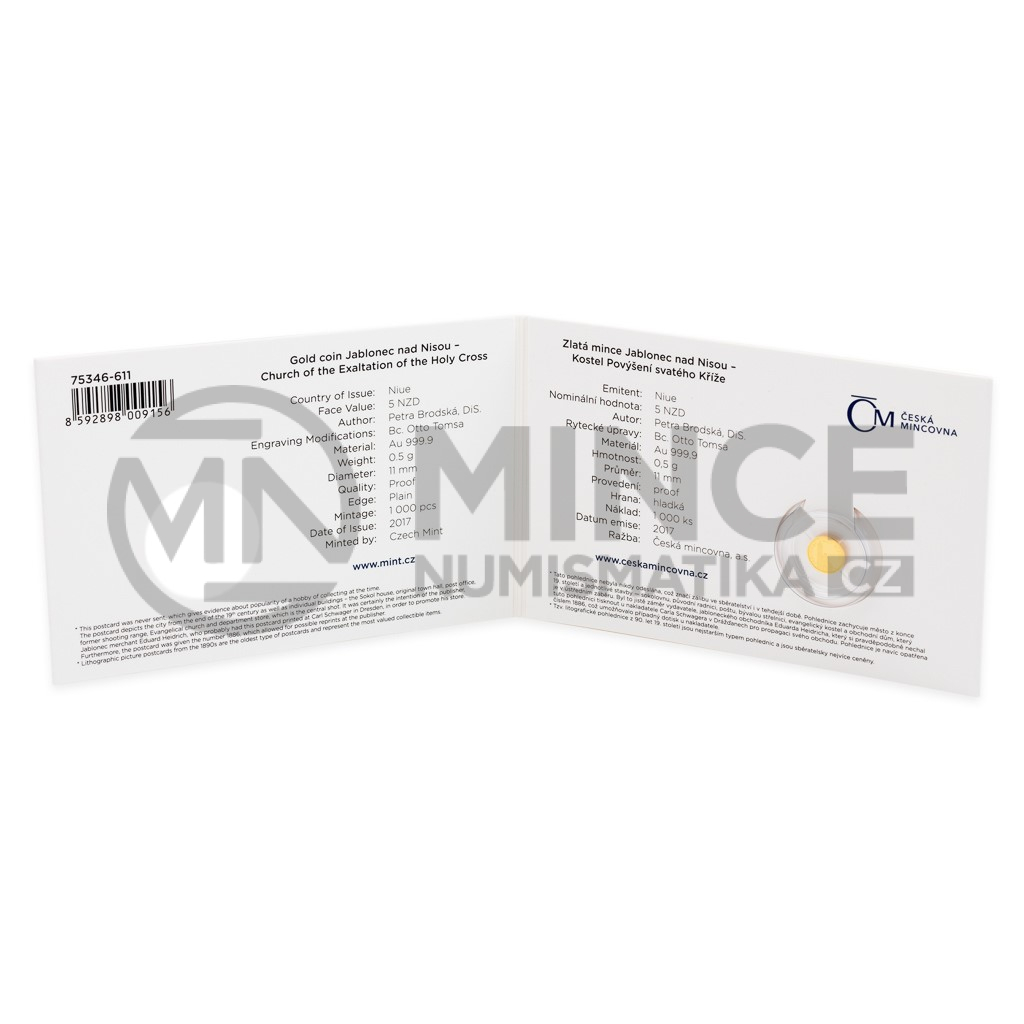 Po úspěšné emisi s motivem Prahy a jejího Hradu připravila Česká mincovna další půlgramovou zlatou minci uloženou do repliky dobové litografické pohlednice. Tentokrát je tématem město Jablonec nad Nisou – sídlo České mincovny – s místním kostelem Povýšení svatého Kříže, který je významnou stavbou sakrální secesní architektury.