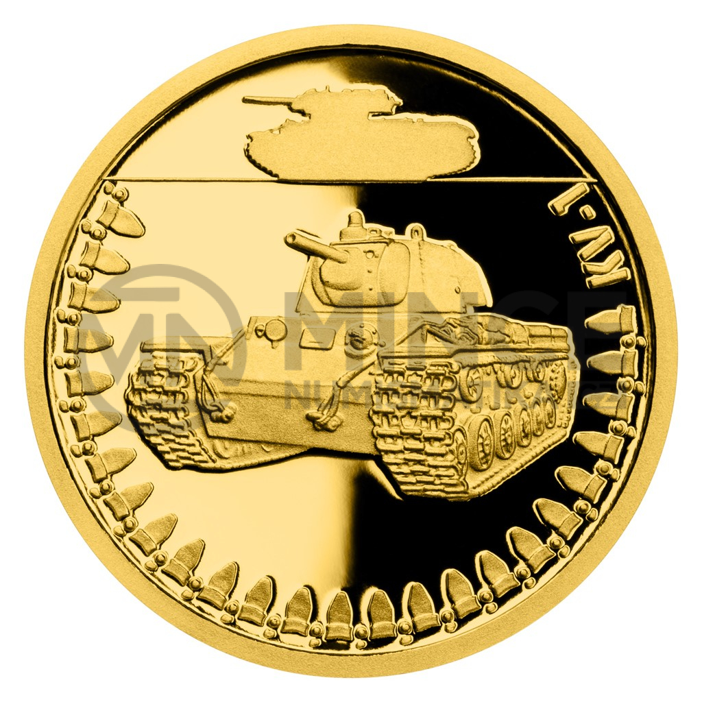 Na šesté zlaté minci České mincovny z cyklu Obrněná technika se objevuje sovětský tank KV-1, který sloužil za druhé světové války.