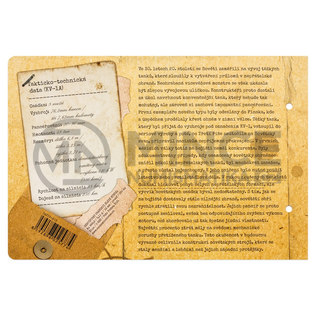 Součástí mince je výpravné balení v podobě katalogové karty plné dobových fotografií, zajímavostí a takticko-technických dat. Jednotlivé karty si můžete ukládat do sběratelského šanonu, který rovněž najdete v nabídce České mincovny.