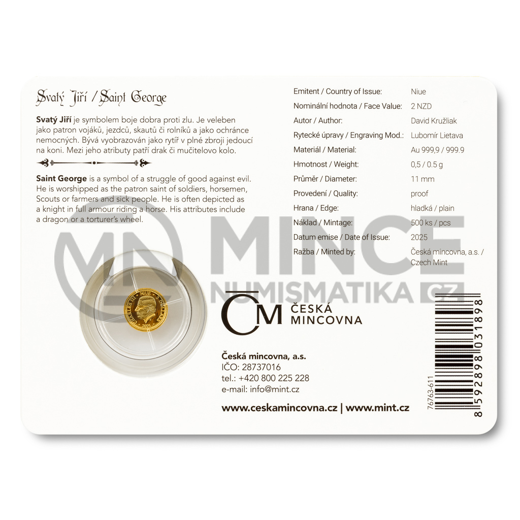 Na další zlaté miniminci České mincovny z cyklu Patroni se představuje svatý Jiří.