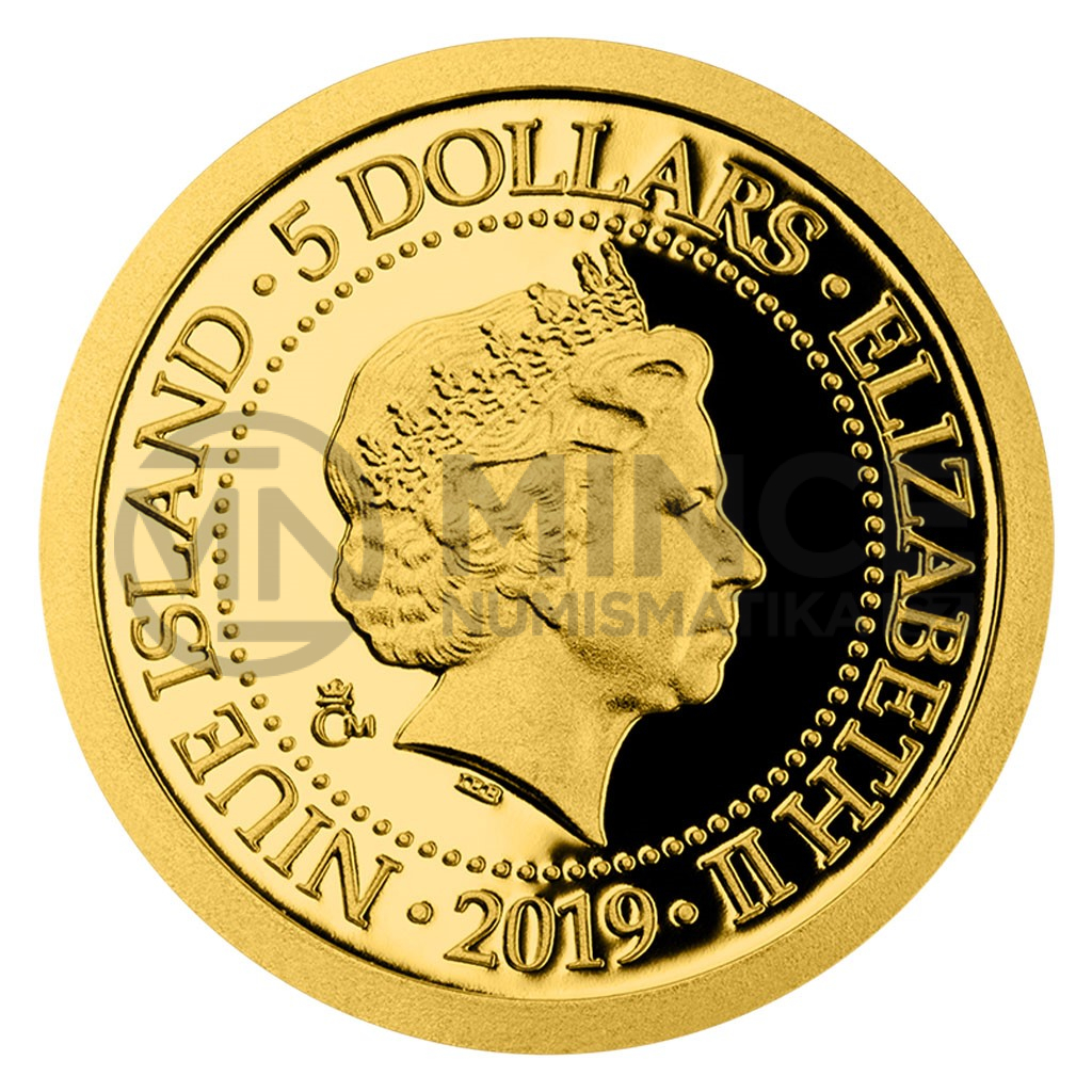 Reverzní strana mince, která je dílem medailérky Petry Brodské, DiS., předkládá současnou podobu Stavovského divadla, které v průběhu 235 let prošlo několika menšími i většími přestavbami. Budova je obklopena opisem STAVOVSKÉ DIVADLO – PRAHA. Averzní strana pak patří atributům ostrova Niue, emitenta, který České mincovně poskytuje zahraniční licenci k ražbě vlastních pamětních mincí. Jsou jimi jméno a profil panovnice Alžběty II., rok vydání 2019 a nominální hodnota 5 DOLLARS (NZD).