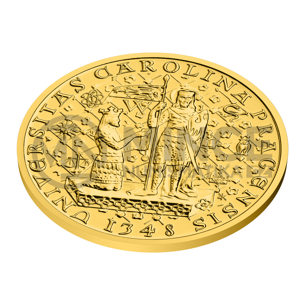 Motivem karlovského pětidukátu se stala vzdělanost. Autor měl pracovat se symboly Univerzity Karlovy – budovou Karolina či univerzitními insigniemi. Realizován byl návrh Zdeňka Kolářského, který vycházel z pečeti největší české vysoké školy, na které klečící Karel IV. předává zakládací listinu svatému Václavovi. Dvojice je obklopena symboly fakult a opisem UNIVERSITAS CAROLINA PRAGENSIS. Letopočet 1348 odkazuje na datum založení univerzity dne 7. dubna 1348. Repliku zpracovala medailérka Mária Filová, DiS.